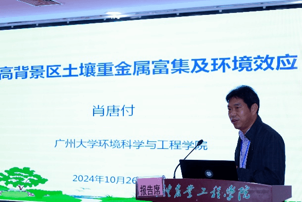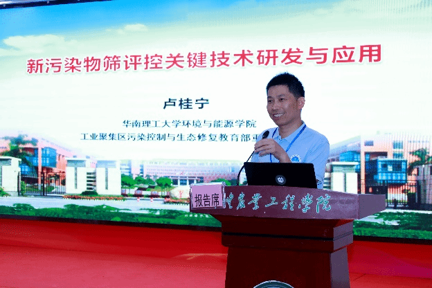 会上,广州大学环境科学与工程学院院长肖唐付教授、暨南大学莫测辉教授、华南理工大学卢桂宁教授和华南师范大学黄明智教授分别以《地质高背景区土壤重金属富集及环境效应》、《典型新污染物低累积作物品种研究与应用》、《新污染物筛评控关键技术研发与应用》和《污水处理深度学习智能预测及优化控制》为题做现场主旨报告。