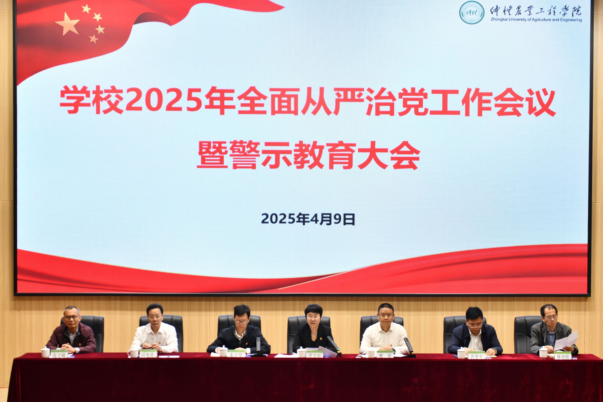4月9日上午,学校在白云校区德新楼学术报告厅召开2025年全面从严治党工作会议,党委书记翟雪梅出席会议并讲话,党委副书记、校长廖明主持会议。党委副书记朱立学、党委常委、副校长肖更生、田允波、林俊睦、张文峰出席会议。全体中层干部、各二级党组织纪检委员、学校第二期特约监察员、纪检监察室全体人员参加会议。