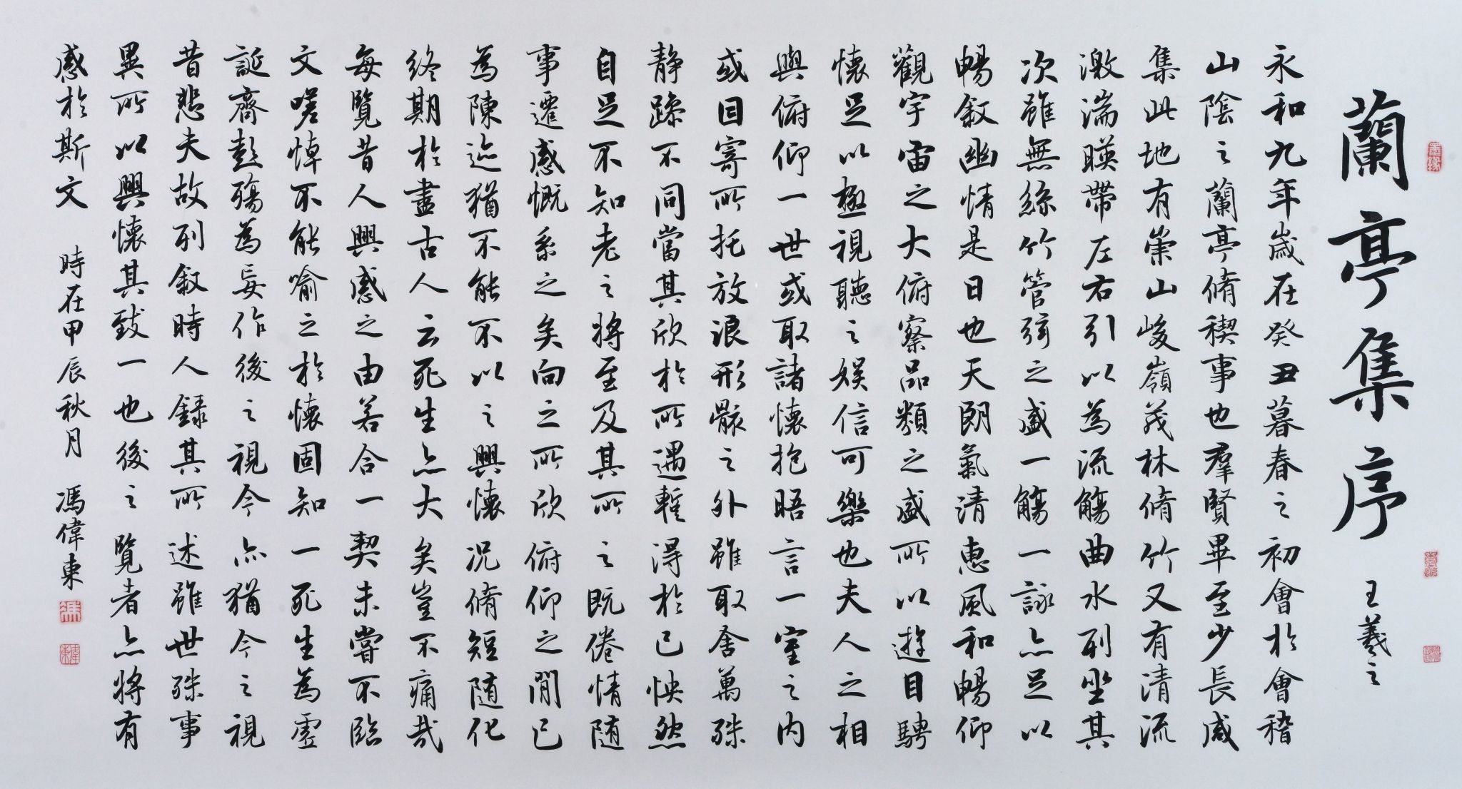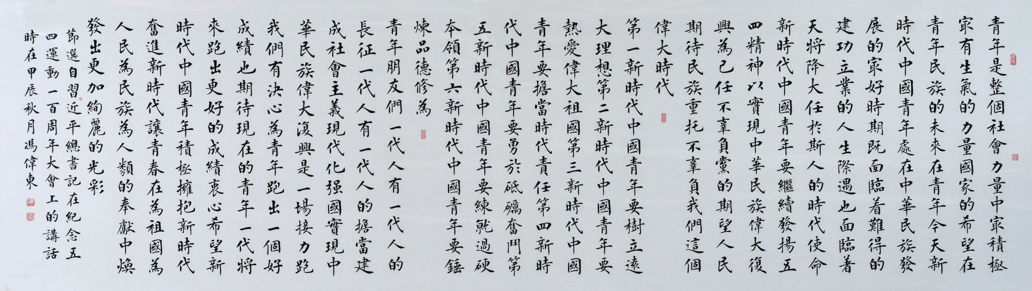此次捐赠,冯伟东校友精心挑选了《习近平总书记在纪念五四运动一百周年大会上的讲话》(节选)、《兰亭集序》、《寒窑赋》等20余副作品,分别收藏于图书馆二楼、四五楼研修室及特藏库,这些精美的书法作品不仅展示了他深厚的书法功底和艺术造诣,更传递了他对学校的深情厚谊和对书法艺术的热爱与执着。冯伟东校友表示,为图书馆捐赠书法作品,意在传承和弘扬中华优秀传统文化,激励更多的年轻人热爱书法、学习书法,共同推动书法艺术的传承与发展。