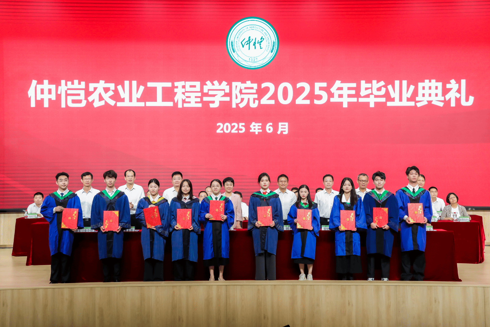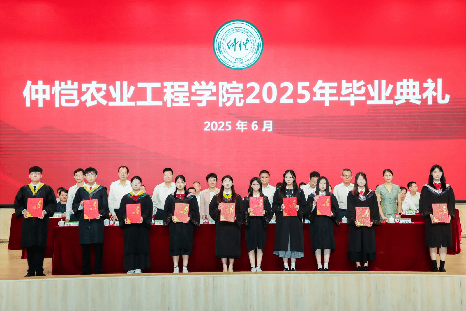 田允波宣读《关于表彰2025届仲恺农业工程学院优秀毕业生的决定》,共有18名硕士研究生和827名本科生荣获2025届“优秀毕业生”的荣誉称号。与会领导为优秀毕业生代表颁发证书。