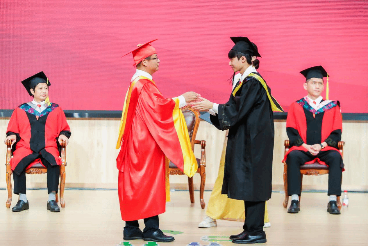 伴随着毕业生代表青春洋溢的歌声和现场热烈的掌声,毕业典礼正式开始。全体师生起立,奏唱国歌,激昂的旋律回荡在会场。廖明代表学校向全体2025届毕业生致以最美好的祝愿和最热烈的祝贺,向见证毕业生成长成才的老师和家长表示诚挚感谢。