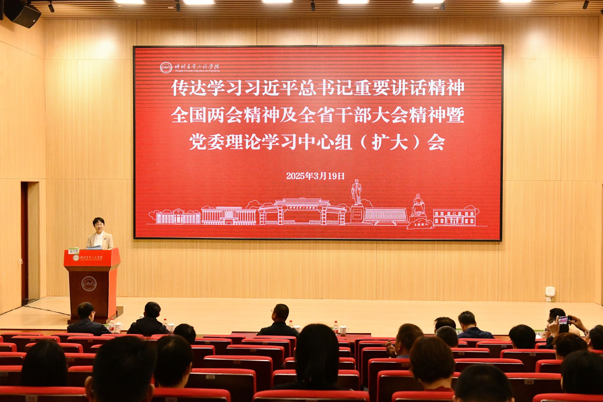 会议传达学习习近平总书记重要讲话精神和全国两会精神。翟雪梅结合全省干部大会精神,就抓好学校学习宣传贯彻工作作出三点部署:一是要坚持高站位认识,在学深悟透上走在前列。各二级党组织要把学习贯彻习近平总书记重要讲话和全国两会精神作为一项重大政治任务抓实落细,组织好本单位师生开展理论学习,切实把学习成果转化为推动学校高质量发展的强大动力。二是要坚持高标准推进,在落实立德树人上力求突破。各二级党组织要将学习贯彻习近平总书记重要讲话精神和全国两会精神与贯彻落实《教育强国建设规划纲要(2024-2035年)》《关于扎实推进教育高质量发展 建设教育强省的意见》等文件贯通起来,与学校决胜“十四五”、谋划“十五五”等工作贯通起来。三是坚持高质量落实,在推动改革攻坚上开创新局。各二级党组织要积极探索教育、科技、人才协同发展新路径,把党的领导贯穿办学治校、教书育人全过程,紧扣“推进高水平科技自立自强”“教育综合改革”等关键任务,以练好内功、稳中求进的战略定力谋划和推动学校事业高质量内涵式发展。