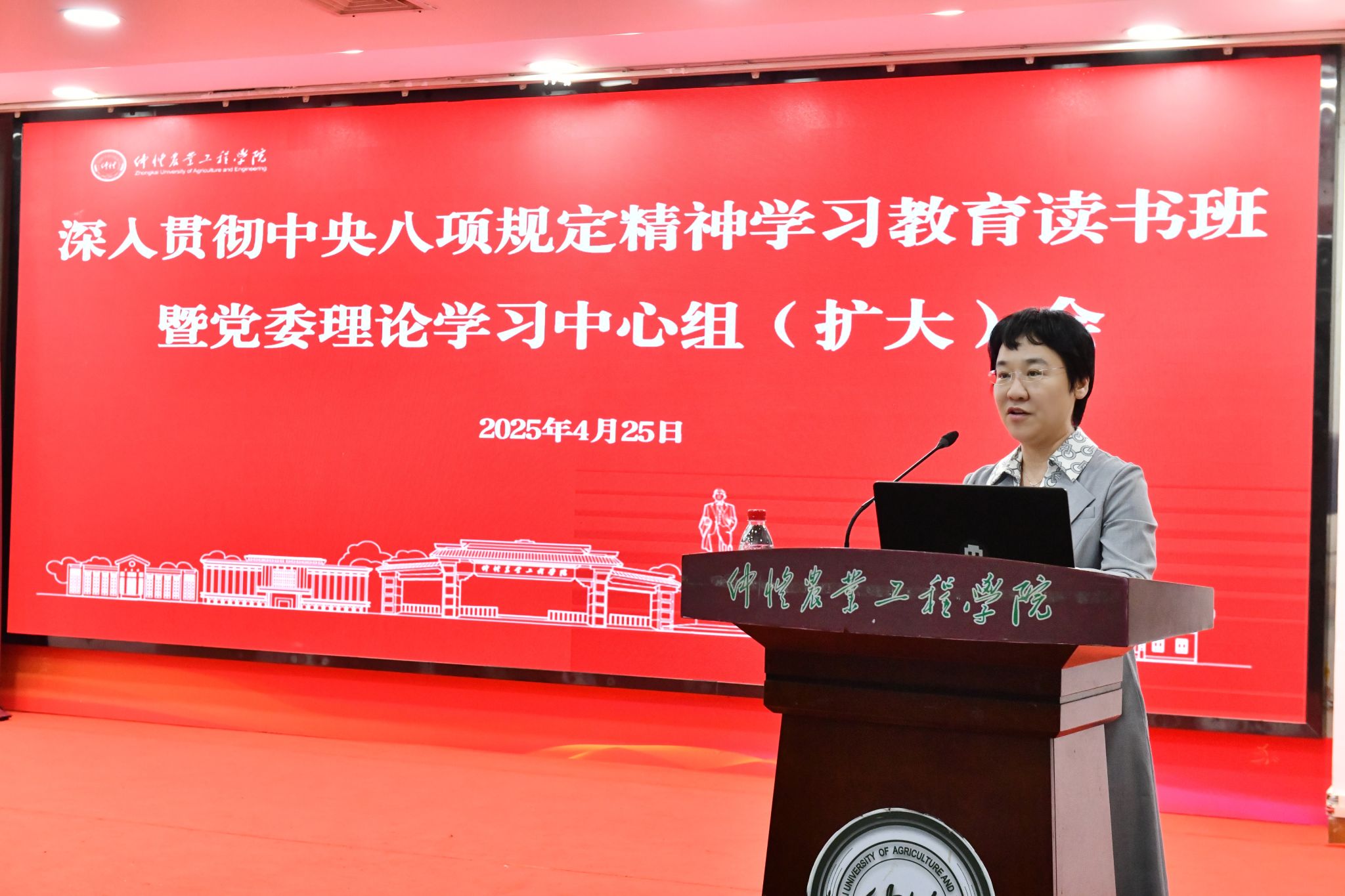 根据省委关于开展深入贯彻中央八项规定精神学习教育的部署要求,为推进作风建设常态化长效化、推动全面从严治党向纵深发展,4月25日,学校在海珠校区召开深入贯彻中央八项规定精神学习教育读书班暨党委理论学习中心组(扩大)会,邀请省委党校党的建设教研部主任梁道刚教授莅校作专题辅导报告。学校党委书记翟雪梅主持会议并讲话。在校校领导、全体中层干部参加会议。