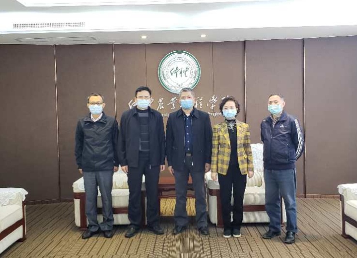 宋垚臻书记、程萍校长、张文峰副校长与广州市花木公司总经理康毅全先生(左三)合影