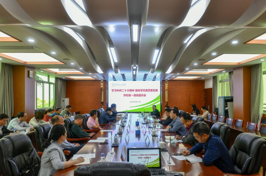 为推动学校统一战线持续深入学习中共二十大精神,3月17日上午,学校在海珠校区教学楼409会议室召开统一战线深入学习中共二十大精神,推动学校高质量发展专题座谈会。校党委副书记邱亚洪出席并讲话,党委常委、bevictor伟德官网部长曾献尼主持座谈会。党委统战部常务副部长何军峰,学校各民主党派、知联会负责人及骨干代表,bevictor伟德官网相关同志参加座谈会。