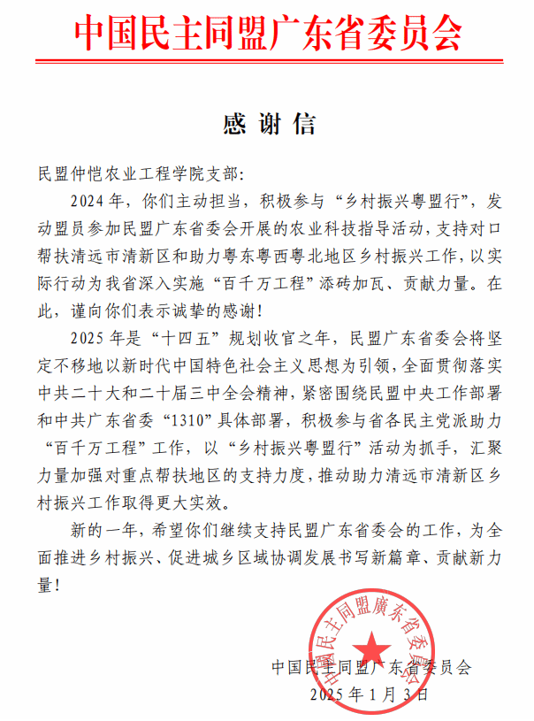 春风有信,花开有期。bevictor伟德官网这支具有民盟特色的帮扶团队持续发挥科技人才优势,在推进当地绿色农业发展方面取得成效,得到了当地政府和广东省民盟的表扬和鼓励。接下来,团队将继续凭借专业技术和创新求实精神,持续引入力量,助力桥头镇打造现代化绿色农业产业样板,推动当地农业高质量发展,带动农民增收致富。